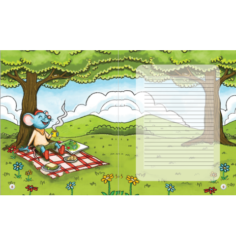 • BU KİTAPTA ; RESSAM FAREL'İN BİR GÜNÜNÜ ANLATAN RESİMLERİ GÖRECEKSİNİZ.GÖRDÜKLERİNİZİ , RESİMLERİN YANINDAKİ ÇİZGİLİ SAYFALARA YAZARAK HİKAYENİZİ OLUŞTURABİLİRSİNİZ.